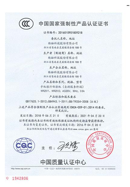 手機銀行體驗機(WRZ513 515)CCC證書