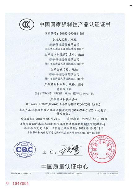 自助發(fā)卡機(jī)CCC證書(shū)