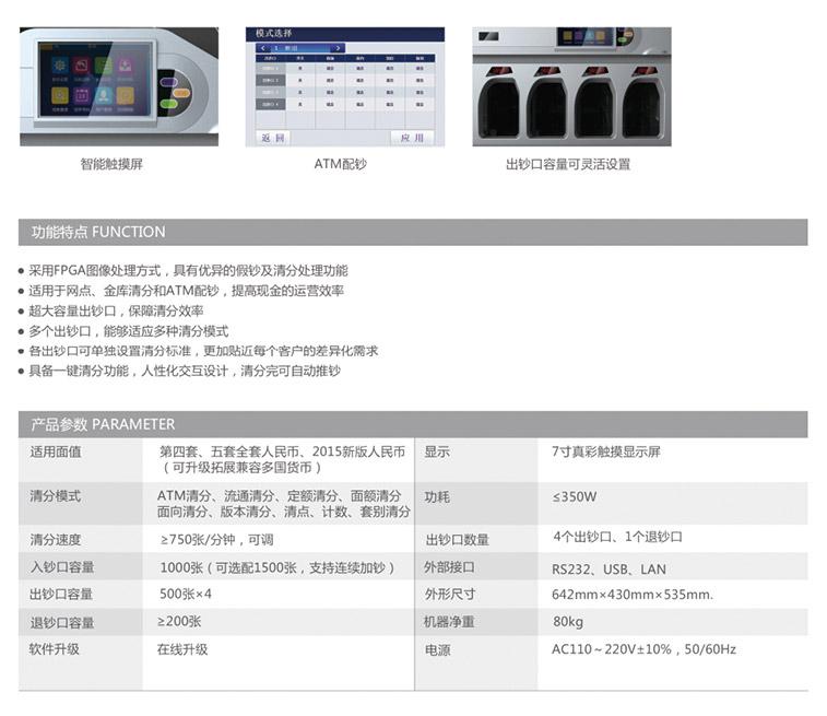 ATM級鑒偽平臺,清分能力可拓展,4x500張出鈔口