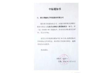 中標中國郵政集團公司A類點鈔機等自助設備入圍招標項目 近日,維融科技股份有限公司(以下簡稱“公司”)收到中國電子進出口總公司發出的《中標通知書》。在中國郵政集團公司2016年營業網點A類點鈔機等自助設備入...